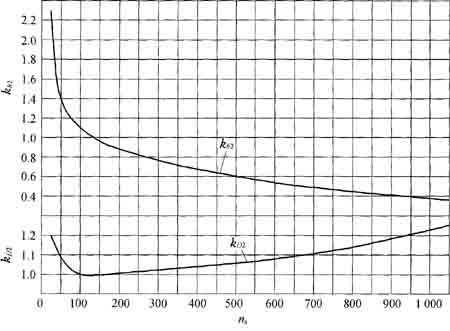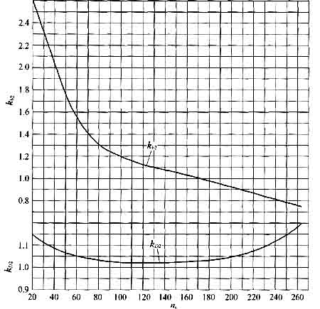 圖8-10雙吸泵kD2,kb2和比轉速的關系